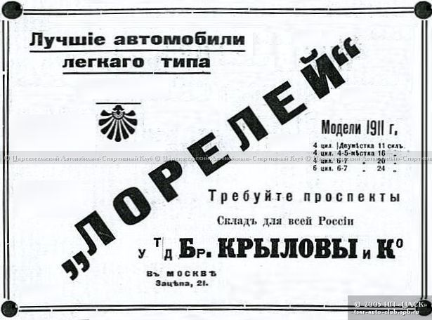 История маленькой автомобильной фирмы начала ХХ века с красивым легендарным названием «Лорелей» давно ушла в небытие. Но в автомобильной истории России это имя оставило славный след!